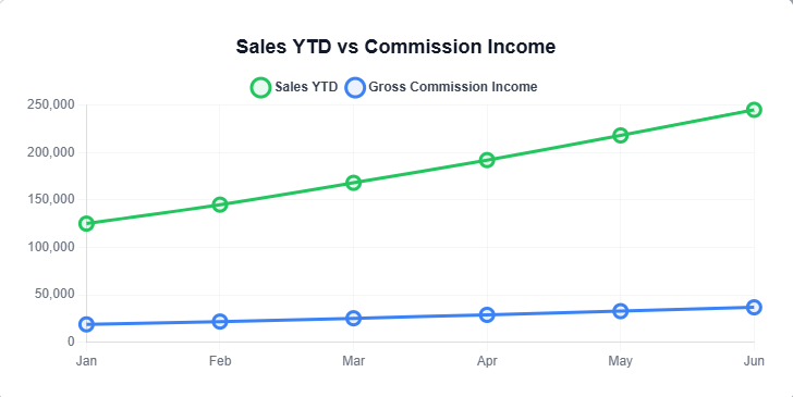 Get a clear view of your agency's health with live data on agent performance, commission tracking, and success rates.