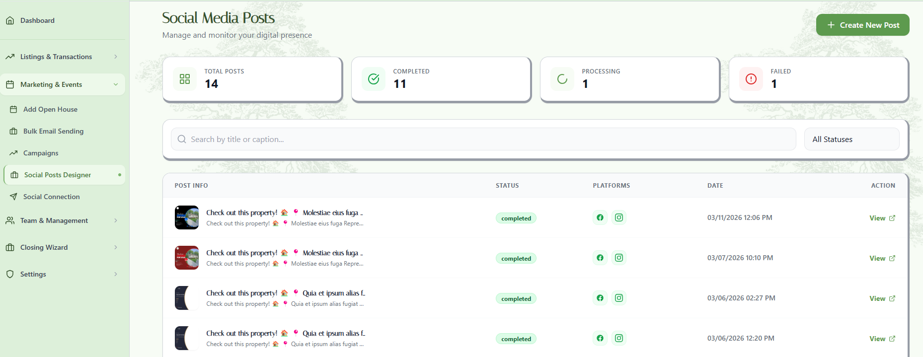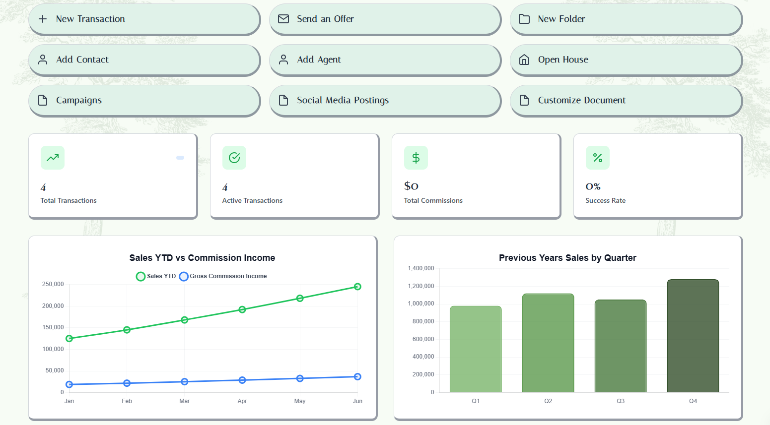 Get a complete, real-time overview of your agency's operations. Track active listings, monitor team performance, and view total commissions from a single, intuitive interface.
